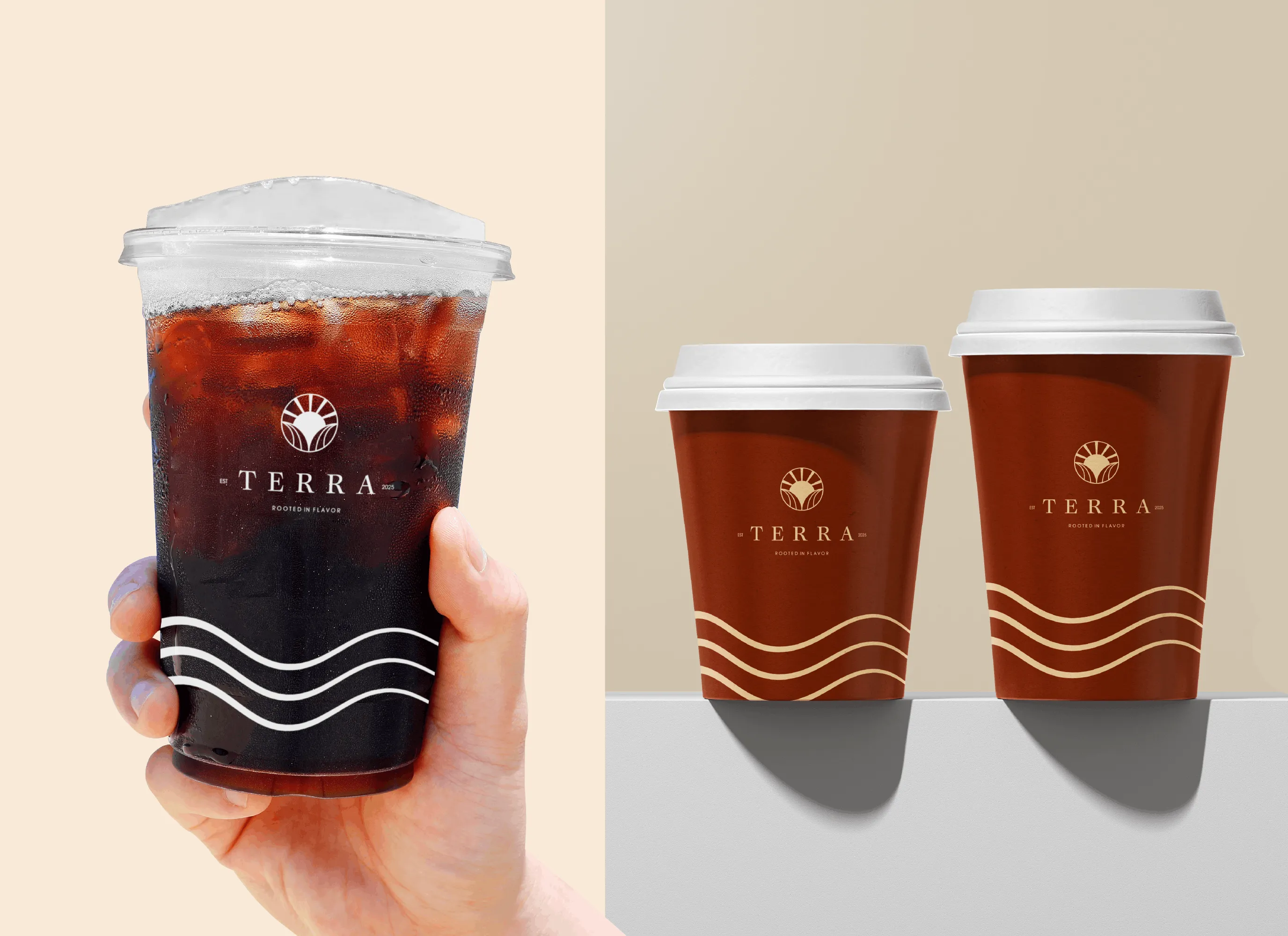 We extended the brand into tangible elements such as plates, cups, and other in-store items, ensuring every interaction reflects Terra’s identity and enhances the overall customer experience.
